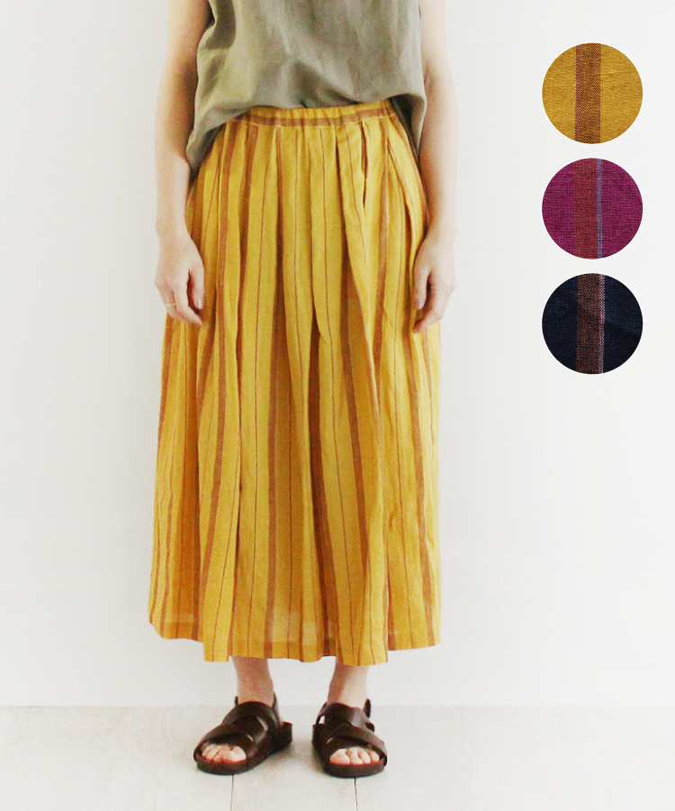 【nofl】リトアニアリネンタックロングスカート《グリーン・ブルー・アカ》 新色追加しました