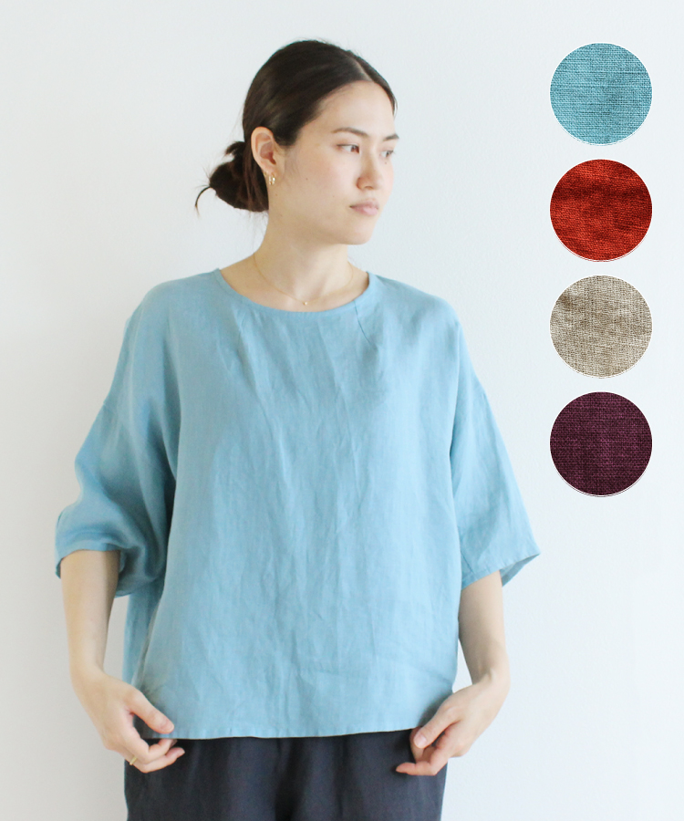 こだわりのリネン生地のシンプルなブラウスです。立体的で女性らしい。
