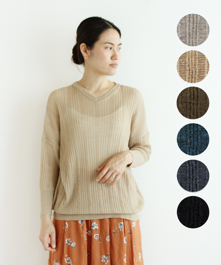 スッキリとした程よい深さのVネックが、幅広いコーディネートで活躍してくれます。